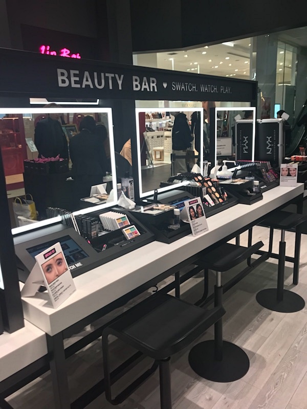 アメリカだけで「1分間に10本売れる」と言われる超人気アイテムのリップクリームをモチーフにした全長2mを超えるオブジェや、売られているメイクがすぐに試せるビューティ・バーなどのインテリアは、メイク好きにはたまらない。