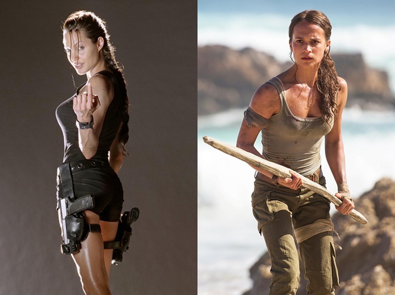 ともにララ・クロフトを演じたアンジェリーナ(左)とアリシア(右)。