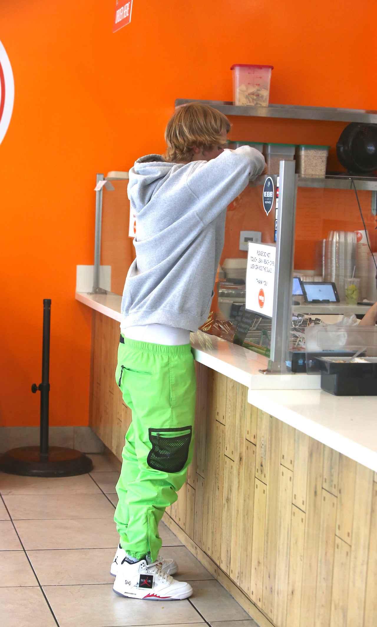 先日、ロサンゼルス市内にある飲食店を訪れたジャスティンは、注文した料理が出てくるのを待っているあいだずっと調理をする店員から至近距離の位置に立って観察。途中、ぐっと身を乗り出してさらに接近する場面も。