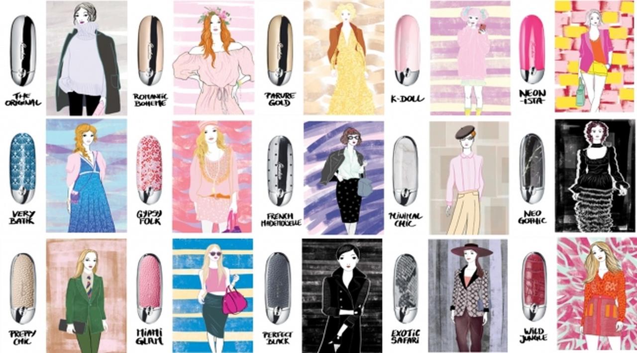 ユニークなケースをインスピレーションにアーティストがイメージする女性像を「ルージュ ジェ」のためにクリエイト。それぞれの女性のファッションスタイルやパーソナリティ、ケースのデザインと背景のパターンが1つとなり<マイ ルージュ ジェ>のコンセプトを表現、選ぶ楽しさを掻き立てる。