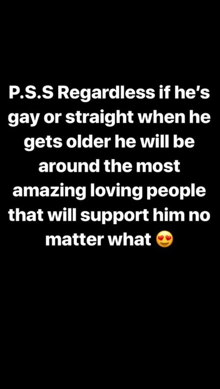 「ちなみに、彼が大きくなった時にゲイでもストレートでも、何があっても支えてくれる素晴らしい人たちに囲まれるでしょう」