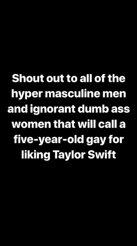 「テイラー・スウィフトが好きな5歳の男の子をゲイと呼ぶとっても男性的な考えの男性と無知でしょうもない女性に贈ります」