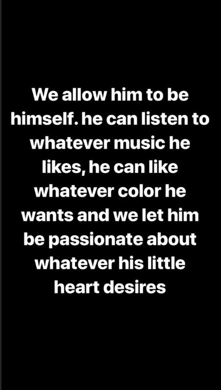 「私たちは彼がありのままでいられるようにしています。彼が好きな音楽を聴けばいいし、好きな色を決めればいいし、彼の小さな心の思うままに情熱を注ぐようにさせています」