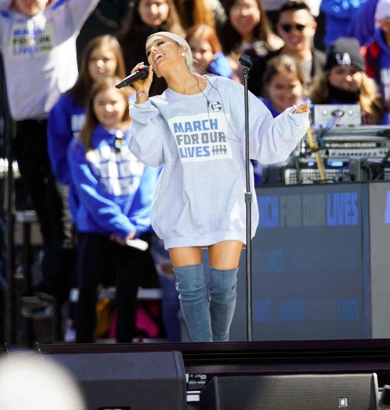 多くのセレブが参加する銃規制のマーチ「March for Our Lives(命のための行進)」で、アリアナ・グランデがパフォーマンスを披露した。アリアナは今回の抗議デモのスローガンでもある「March for Our Lives」という文字が胸元に大きく書かれたオーバーサイズのスウェットを着用して登場。