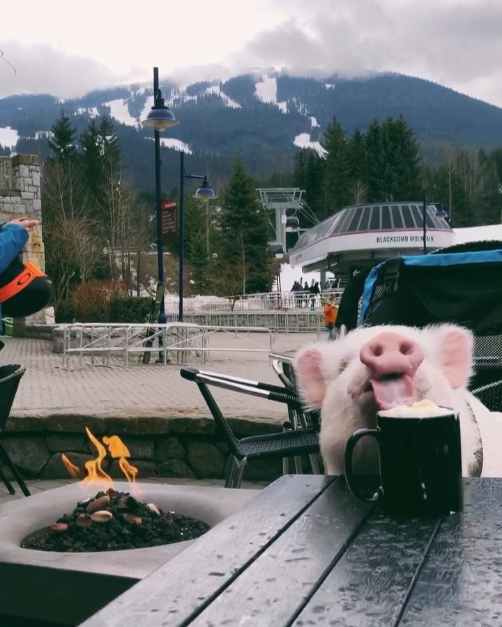 ULTIMATE TRAVELING PIG on Instagram: “Enjoying some apres ski with a hot chocolate in Whistler ☕️⛷ • Rien de mieux qu’un bon chocolat chaud près du feu après une journée de…”