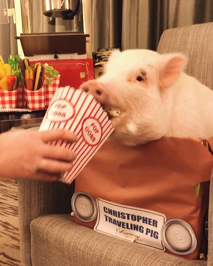 ULTIMATE TRAVELING PIG on Instagram: “Movies are better with SNACKS Thanks @fairmontwaterfront for the nice setup ❤️ • ⚠️ guess which movie I’m watching . . . Les soirées…”