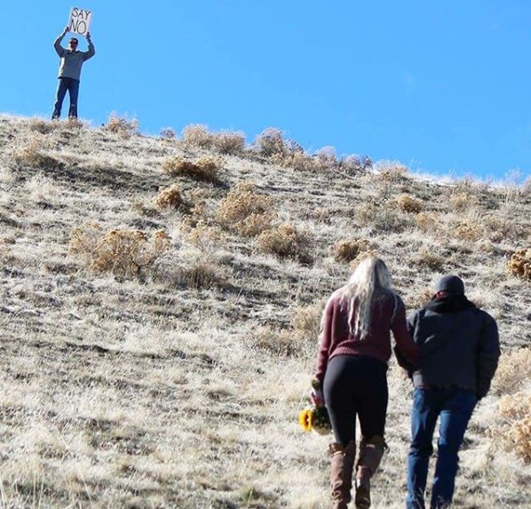この日レヴィは、「MARRY ME(結婚して)」と文字が書かれた大自然のなかでひざまずいてプロポーズ。もちろん答えはイエス。感動のあまり泣いてしまったアリソンだけれど、後ろを見るとなんとアリソンの父親の姿が…。