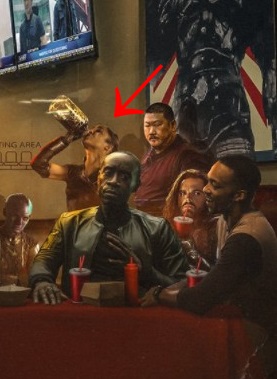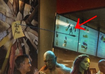 さらに、右側の壁に貼ってある「TEAMWORK」と書かれたポスターの中央には「save a seat」と書かれたメモが、ホークアイの放った矢で止められている。その矢の先を見てみると…、なんとアントマンとワスプの姿が!
