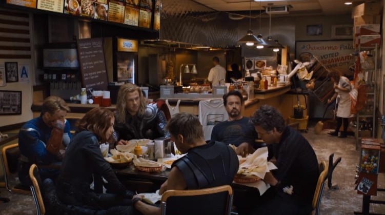 見れば見るほど面白いこのファンアートのタイトルは、「The Last Shawarma(最後のシャワルマ)」。このタイトルの由来は、2012年に公開された『アベンジャーズ』シリーズ1作目の『アベンジャーズ』のエンドクレジットの後に流れたおまけのシーンに関係している。
