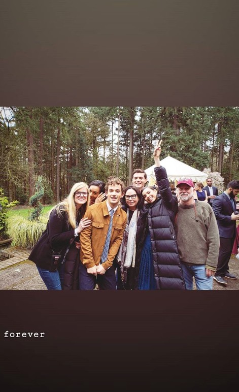 今回の来日後すぐに撮影に戻ったソフィア。やっとすべての撮影が終わり、キャストや仲間一緒にお祝いをしていた。
