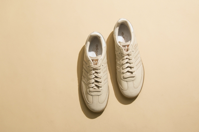 サッカーシューズとして誕生したアディダス・オリジナルス「サンバ」。カジュアルな印象が強い「サンバ」を、トーナルで表現したオールワントーンベージュで仕上げ、女性が履きやすい柔らかな印象に落とし込んだ。春真っ先に履きたくなる、クリーンで軽やかな一足。