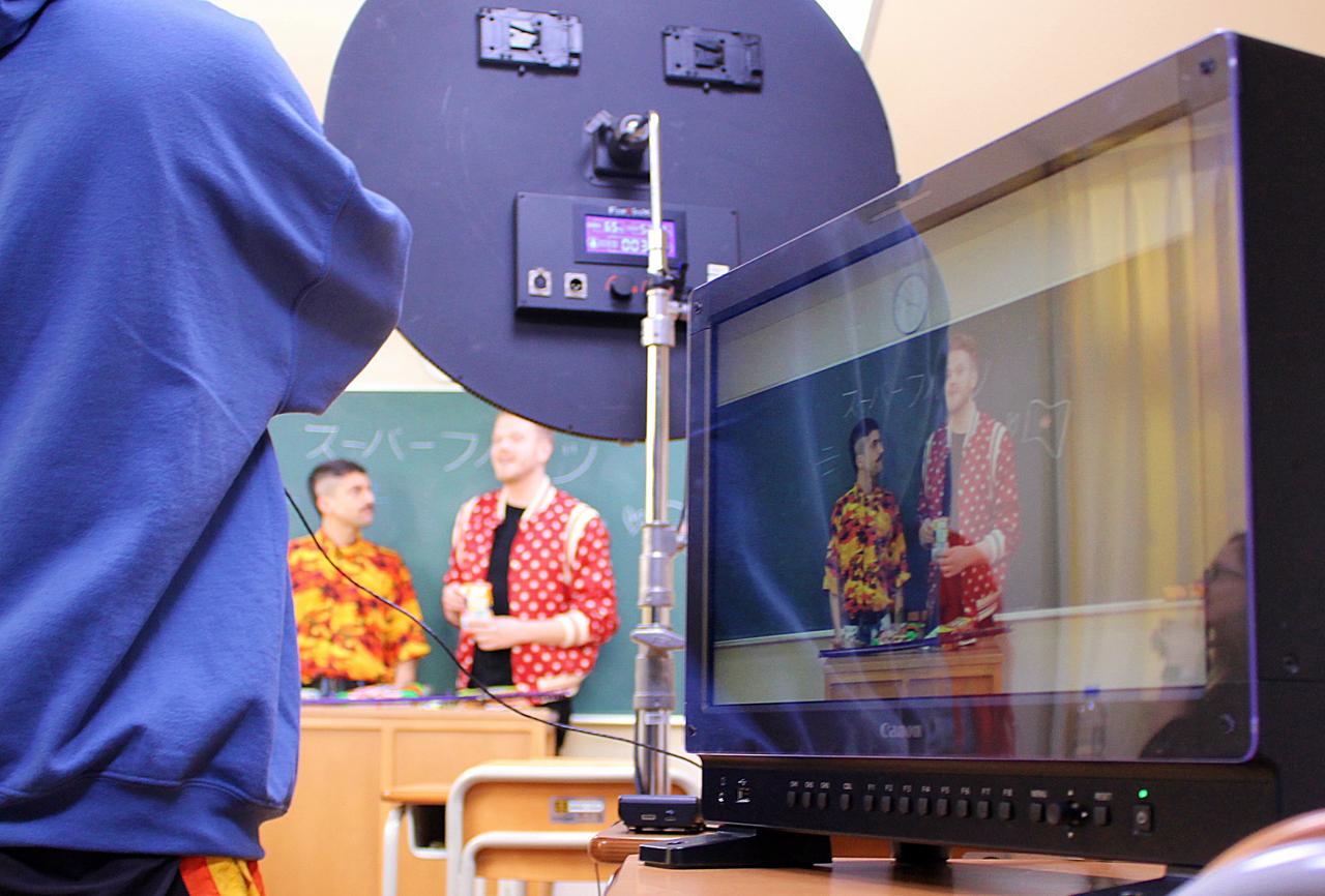 撮影が行われた場所は、六本木にあるYouTubeスペース。ここにはいくつかセットがあるが、スーパーフルーツはこの中から、日本の学校の教室を再現したセットを選んだ。