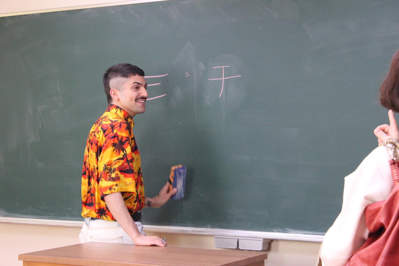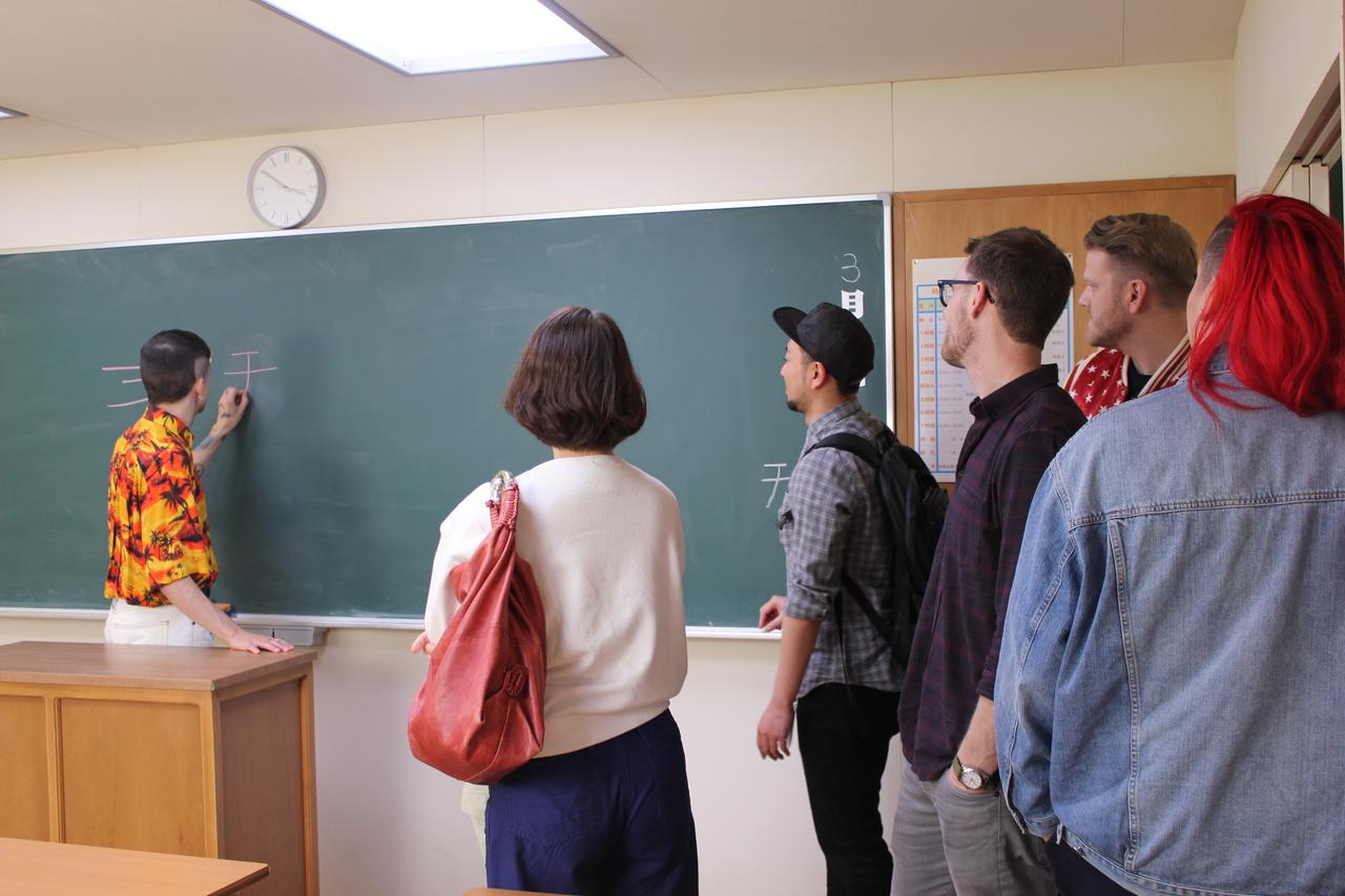 日本語で自分の名前を書くチャレンジや、日本のお菓子を試食するチャレンジなどに挑戦。©フロントロウ