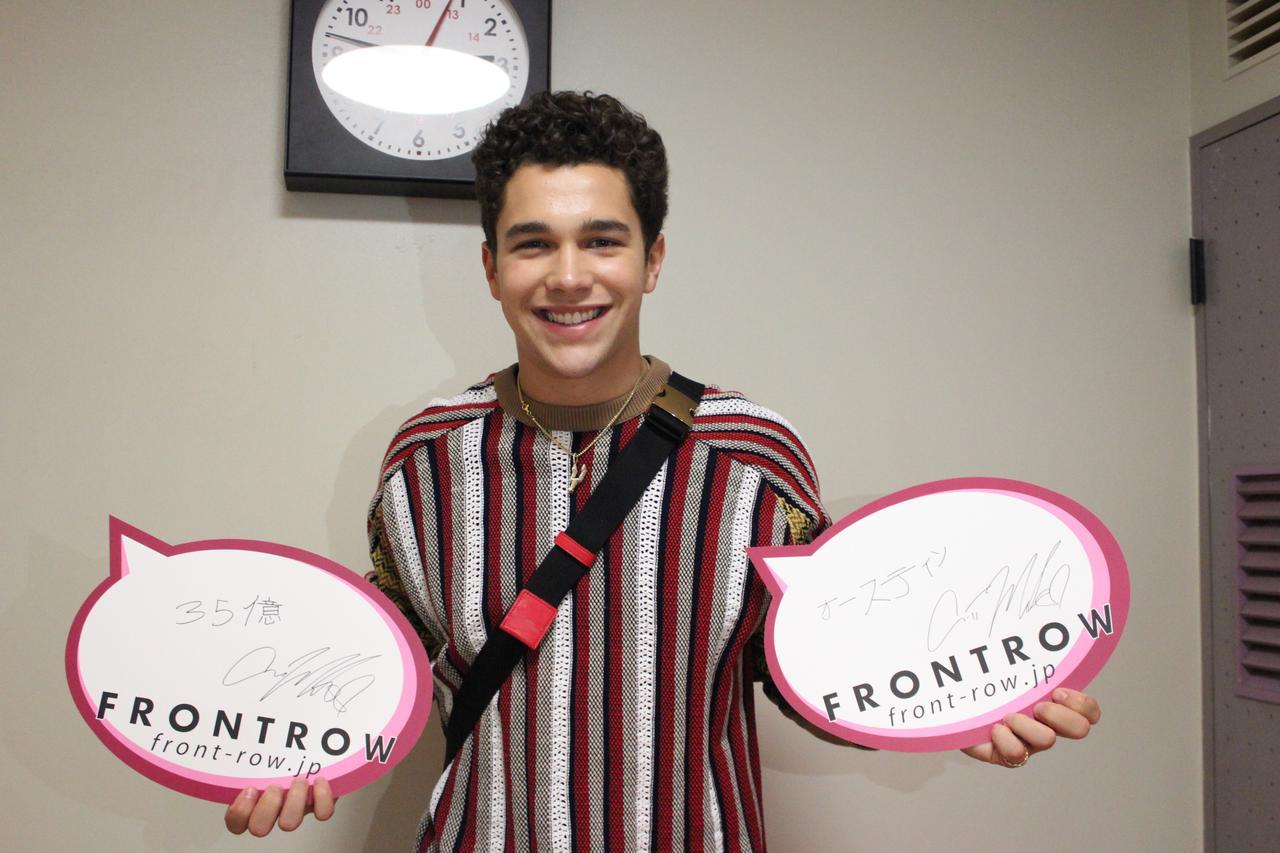人気シンガーのオースティン・マホーンが、フロントロウの読者のために日本語サインに挑戦! さらにブレイクのきっかけとなったブルゾンちえみの「35億」のサインも書いてくれました。