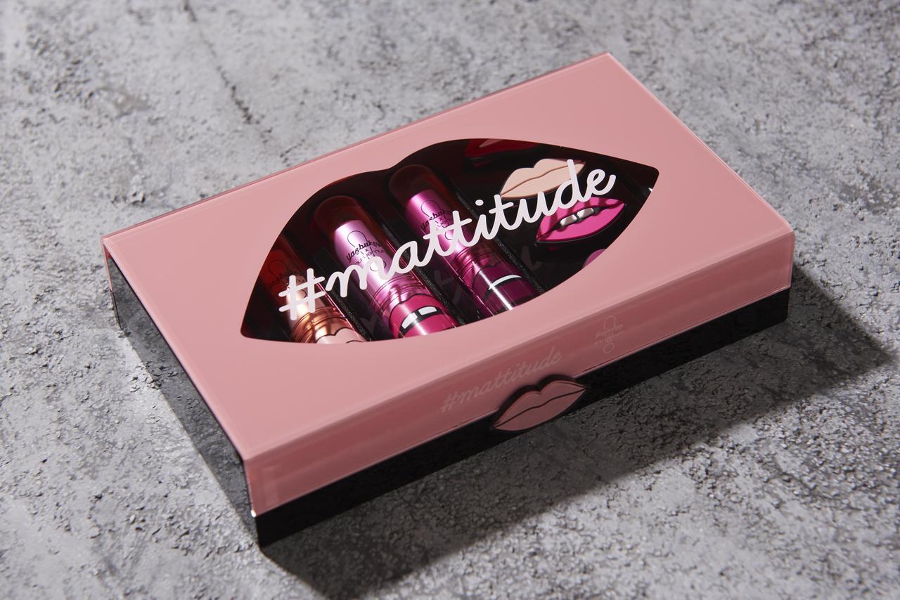 シュウ ウエムラとYazbukeyのコラボ「マティチュード コレクション」から、リップ「ルージュ アンリミテッド シュプリーム マット」が4色、メタリックなリップライナー「マジックメタリック リップ ライナー」1色がセットされ、とっても豪華。