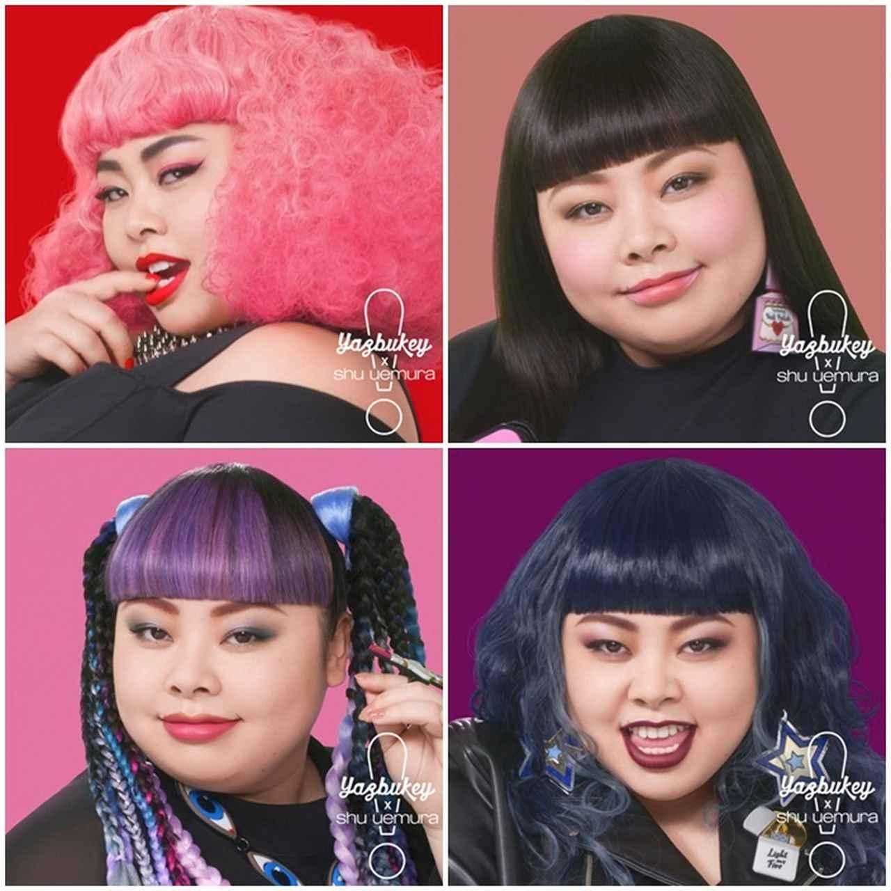 リップは、Yazbukeyの代表的アイコンのリップモチーフをデザインした全16色展開の「ルージュ アンリミテッド シュプリーム マット」から、アンバサダーに就任した渡辺直美がルックで使用した色を含め4色をピックアップ。