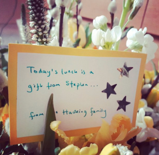 「今日のランチはスティーブンからの贈り物です…。― ホーキング・ファミリーより」