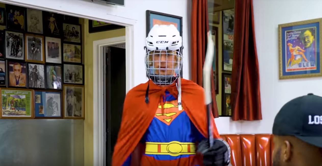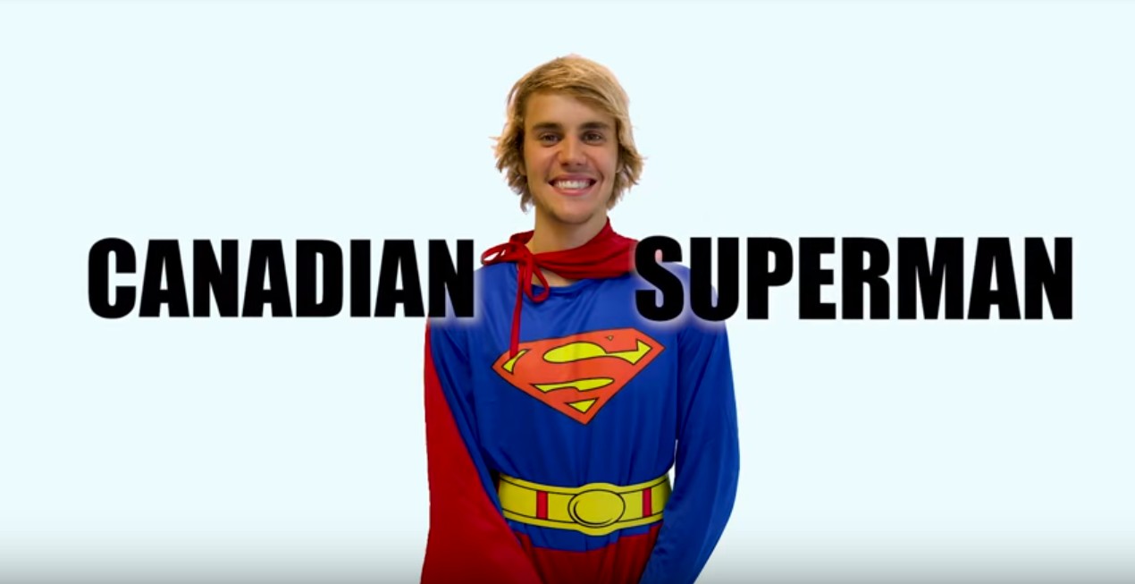 ジャスティンは、動画の終盤で、親切すぎることが逆に鼻につく「カナダ人スーパーマン」役で登場。
