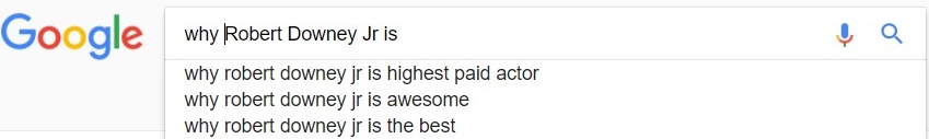 カリスマ的な人気を誇るトニー・スタークに負けず劣らず、ロバート自身も好感度はトップクラス。英語で「なぜロバート・ダウニー・Jr.は…」とグーグル検索した時の検索候補の結果を見ればその人気は一目りょう然で、「なぜロバート・ダウニー・Jr.は素晴らしいのか」「なぜロバート・ダウニー・Jr.は最高なのか」と、彼への賛辞が並ぶ。
