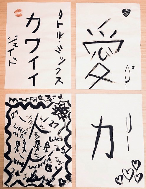 「初体験の書道は、学生に戻って授業を受けている感じだった。私たちのファンはみんなカワイイから、カワイイという言葉にした!一番好きな日本語だしね。個人的にはとても上手に書けているように見えるけど、実際に正しく書けているのかしら」