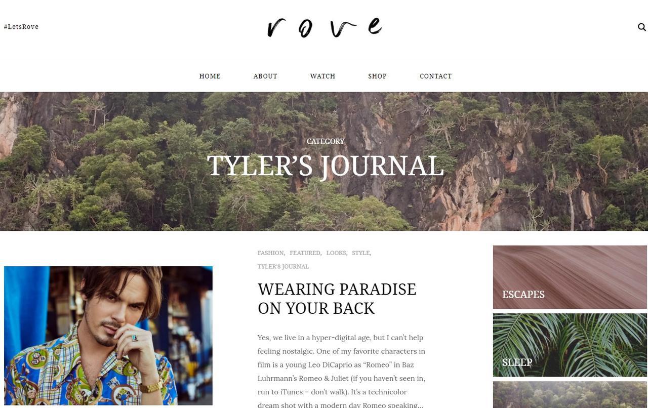 タイラーが今最も情熱を注いでいるのが、2月に立ち上げたカルチャーサイト「Rove(ローヴ)」。トラベル・グルメ・カルチャーの情報がつまったサイトには、「性別、人種、収入に関係なく、ここにはあなたの必要としているものがあります」と書かれており、タイラーの日常や興味を知ることができる。