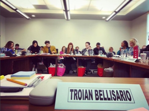 ドラマ『フェイマス・イン・ラブ』の台本読み。中央は主演のベラ・ソーン。