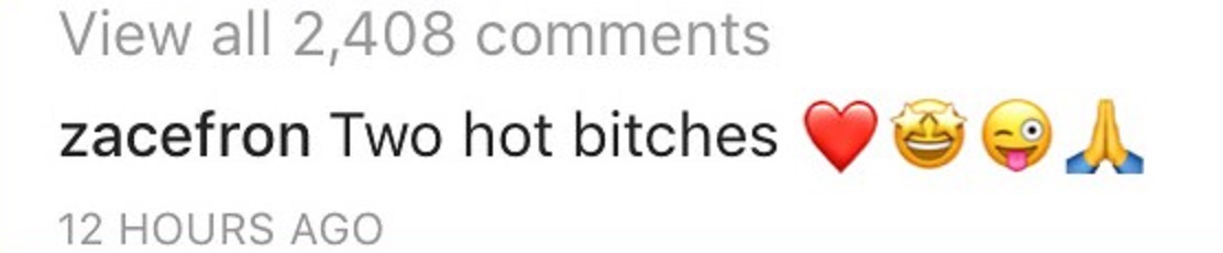 ザックの実際のコメントのスクリーンショット。©Zac Efron/ Instagram