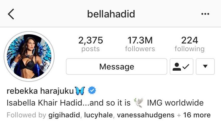 このレベッカ・ハレジュクの正体は、実は現在来日中の人気モデル、ベラ・ハディッド。初めは自身のインスタグラムのプロフィールに、レベッカ・ハラジュクと書いてあるだけだったが、ついに専用インスタグラムまで設立した。