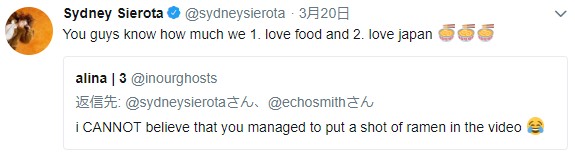 そのことをファンに突っ込まれると、シドニーは、「知ってるでしょ、私たちが第一に食べ物が大好きで、第二に日本が大好きなことを」と答えていた。