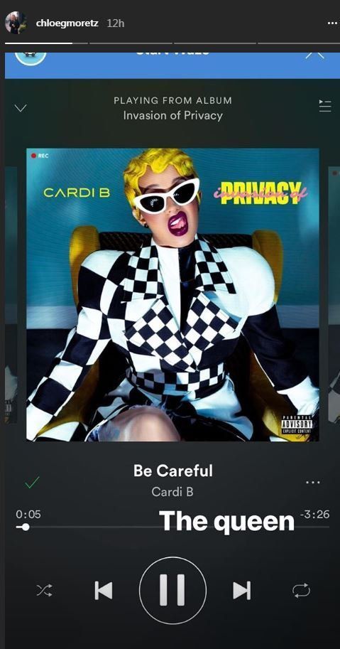 それは、人気ラッパーのカーディ・Bがリリースしたばかりのアルバム『インベージョン・オブ・プライバシー』の収録曲「ビー・ケアフル」を聴いている画面をスクリーンショットし、「クイーン」とコメントしたもの。