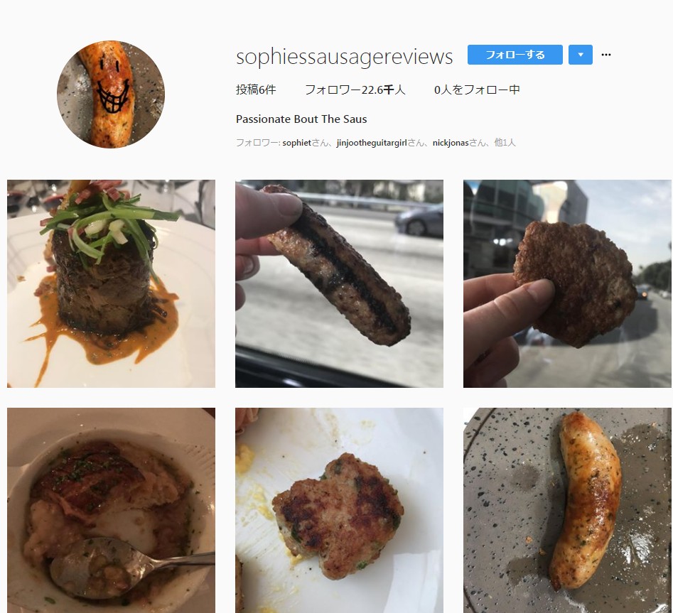「sophiessausagereviews(ソフィーのソーセージレビュー)」という名前のアカウントで始めたソフィーは、1つ1つの投稿で食べたソーセージの写真を載せ、評価して点数をつけているのだ。