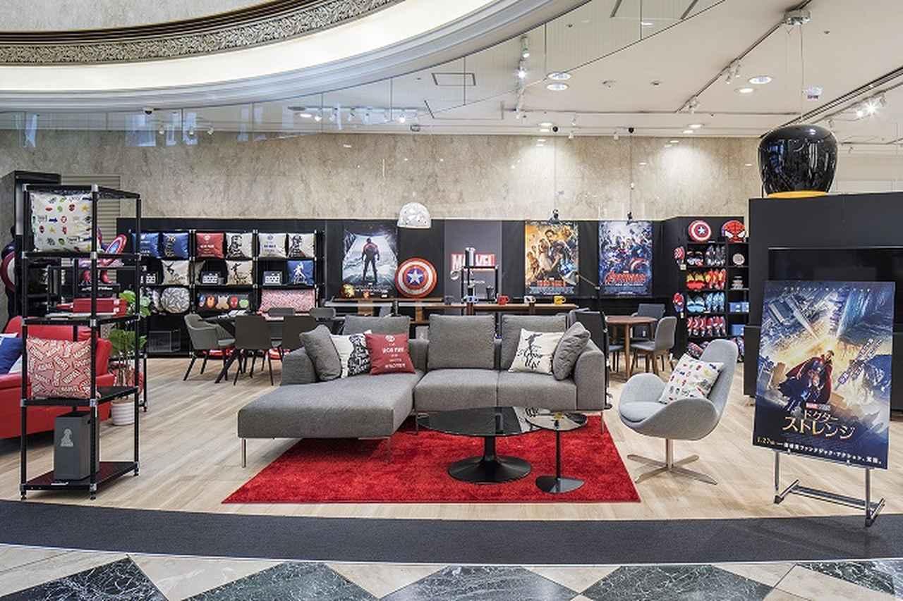多彩なデザイン商品と大塚家具が世界から厳選した本格的インテリアを取り揃えた展示フロアは、MARVELの世界観を存分に楽しめる。期間限定ショップは、2018年4月14日より6月3日まで。