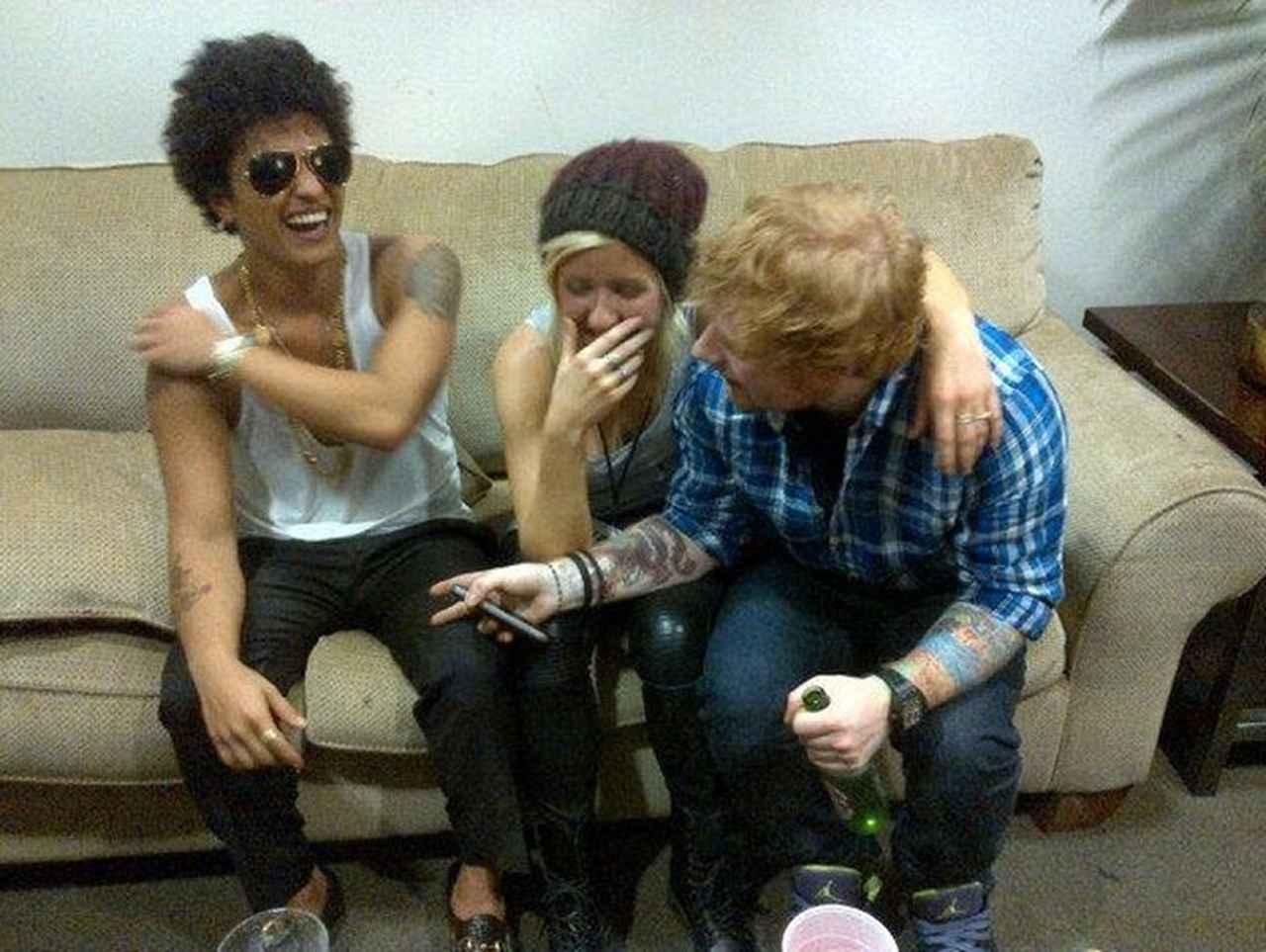 2013年に公演でコラボした時にブルーノが公開したエドとの写真。中央はシンガーのエリー・ゴールディング。