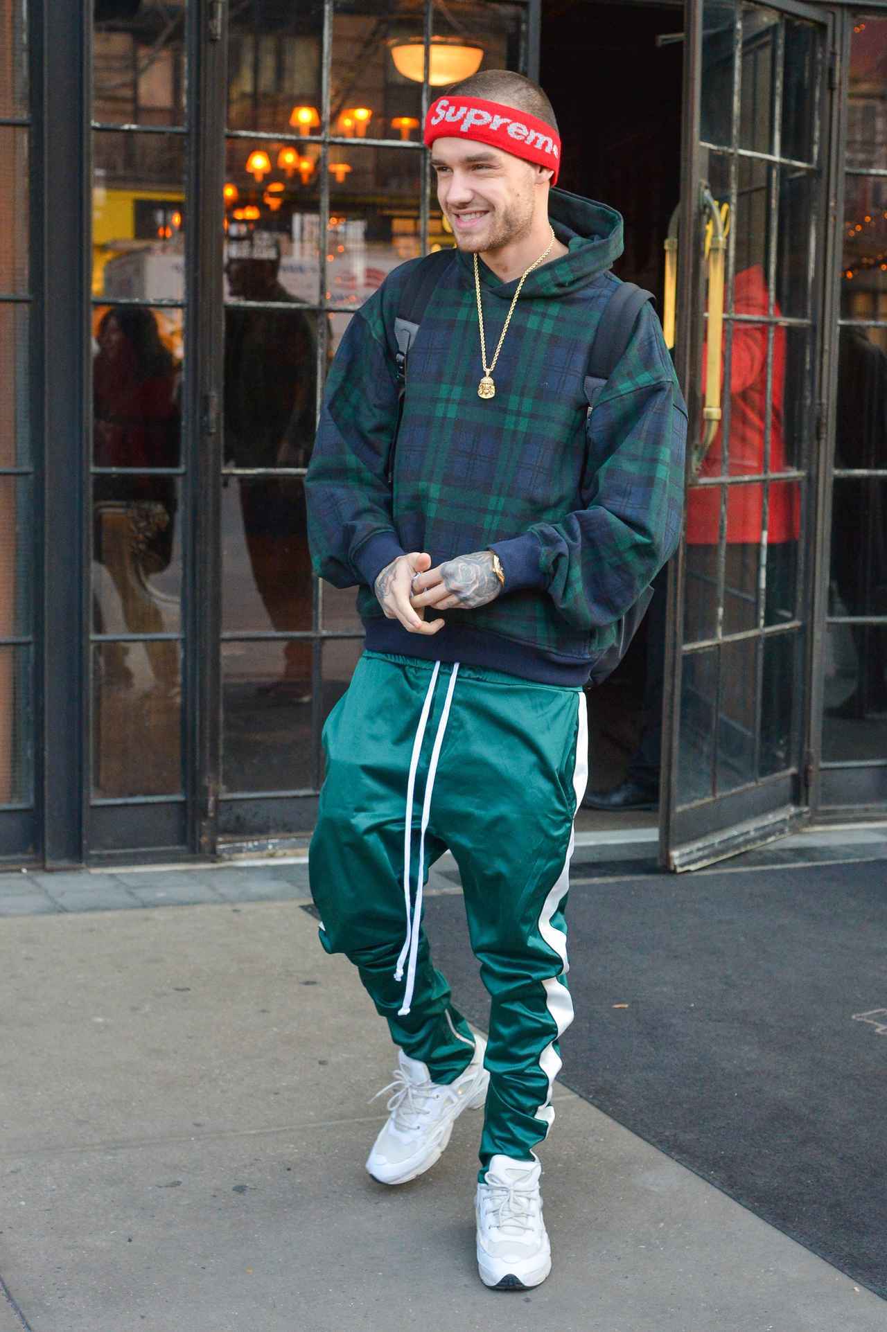 人気グループ、ワン・ダイレクションのリアムは、グリーンをベースにしたコーデのアクセントに、レッドが目立つシュプリームのヘッドバンドをアクセントに。