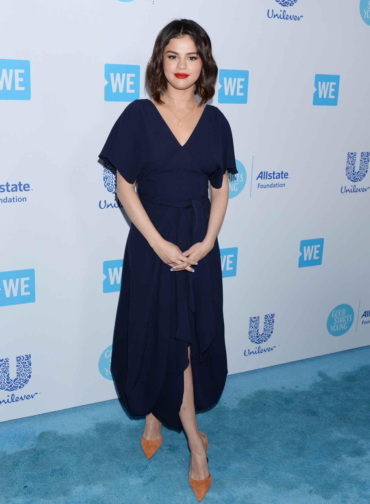 先日、シンガーのセレーナ・ゴメスが、カルフォルニア州のイングルウッドで開催された、若者の社会貢献への意識を高めるWE DAYというイベントに参加。この日のセレーナは、ネイビーカラーのドレスでカメラの前に現れた。