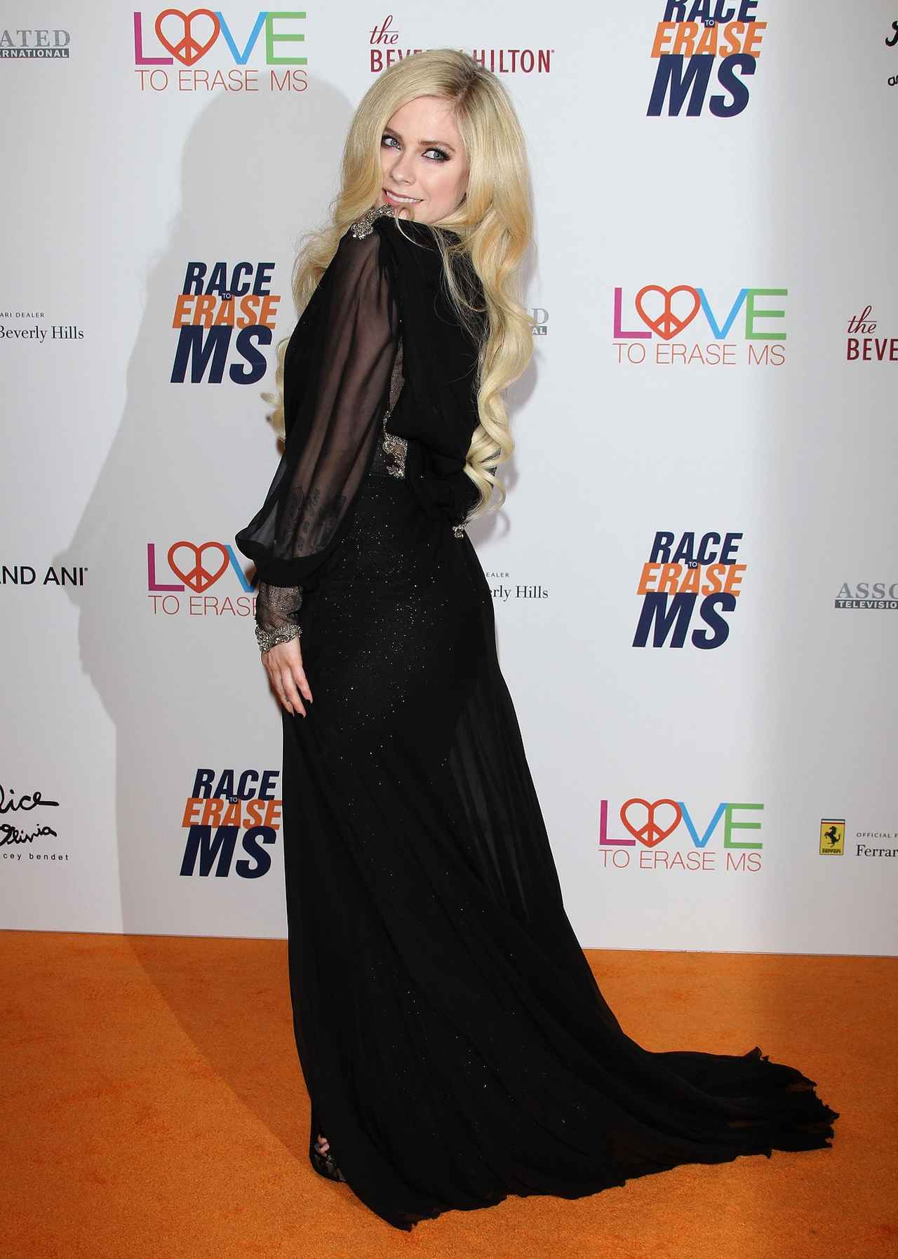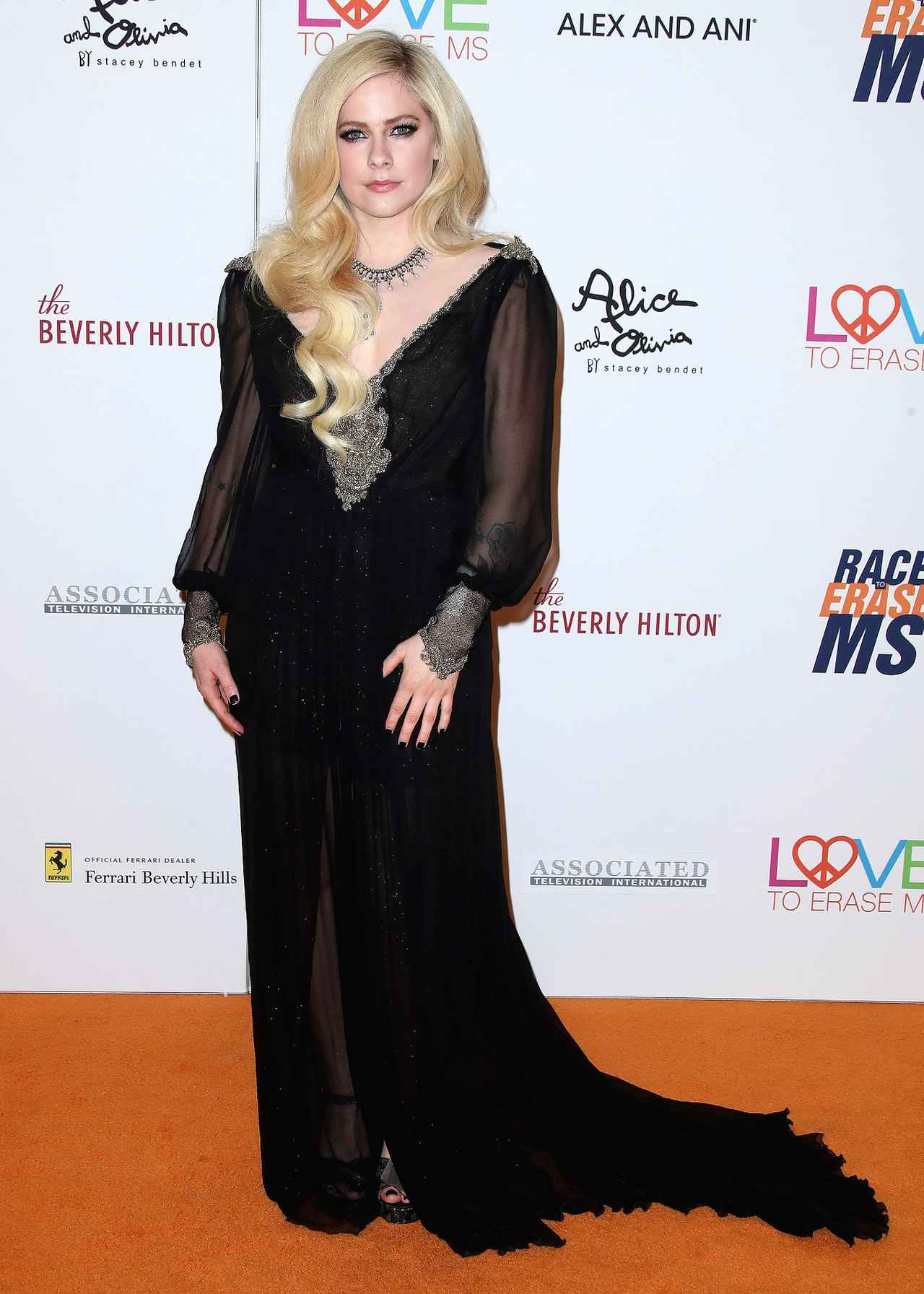 現在33歳のアヴリルはこの日、ウェディングドレス専門のクチュールデザイナーとして有名なガリア・ラハブ(Galia Lahav)の胸元が大きく開いた黒のシースルースリーブドレスでレッドカーペットに登場。