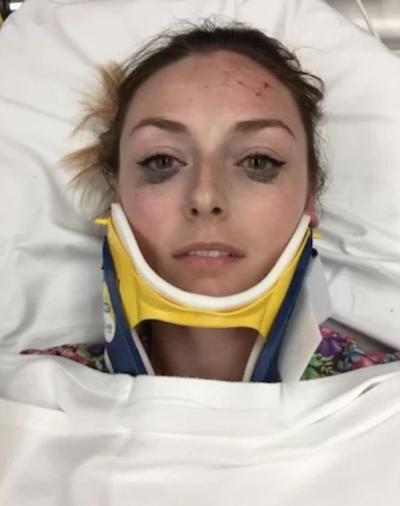 文章だけでは、「本当か?」と疑ってしまうところだが、この口コミには、アイライナーの脅威の持続力を証明するために、首にギブスを装着した女性が額から血を流した状態の痛々しすぎる顔写真が添えられていた。
