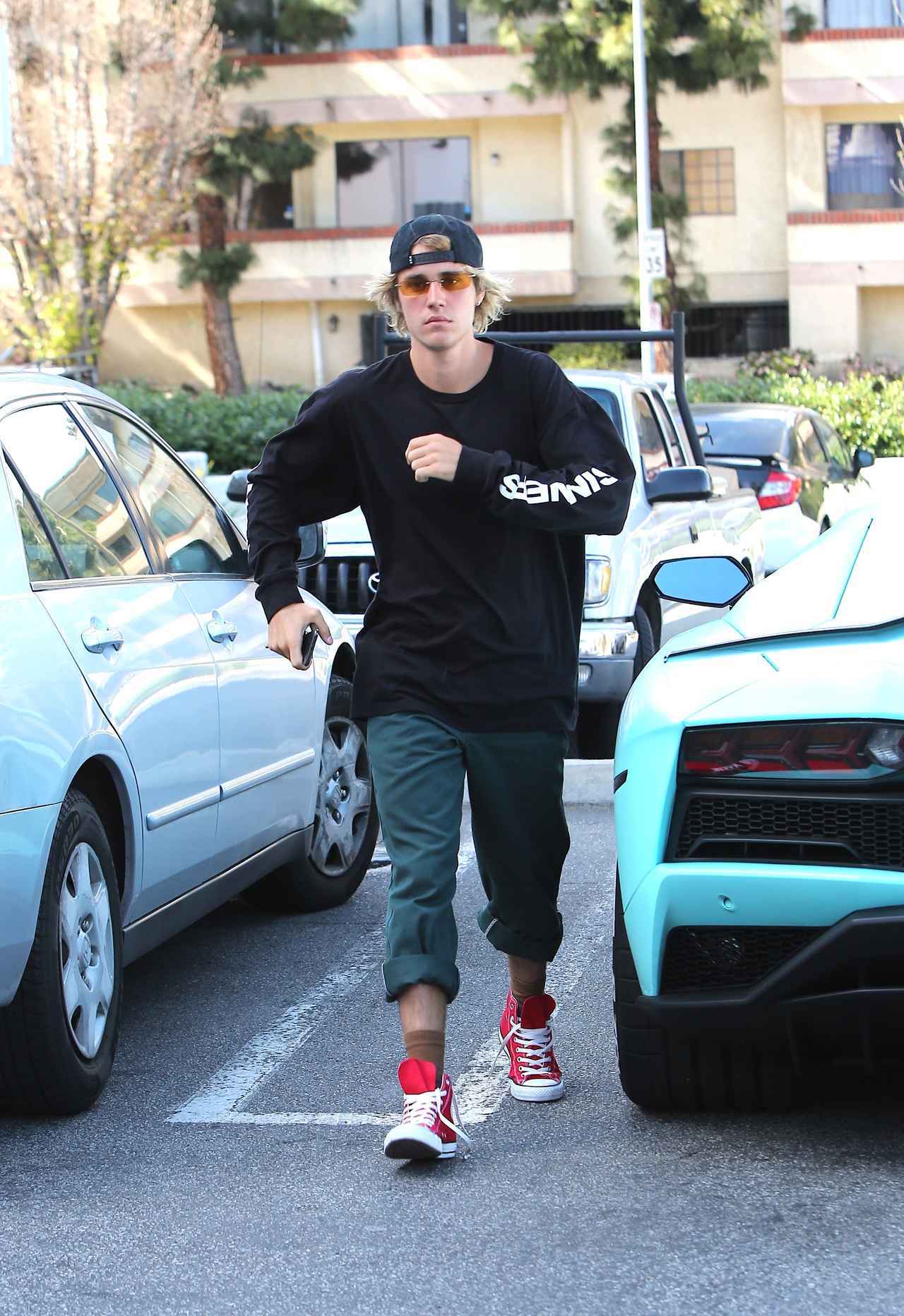 店に入る時は険しい表情をしていたジャスティンだが、店から出てきた時にはご覧の表情に。