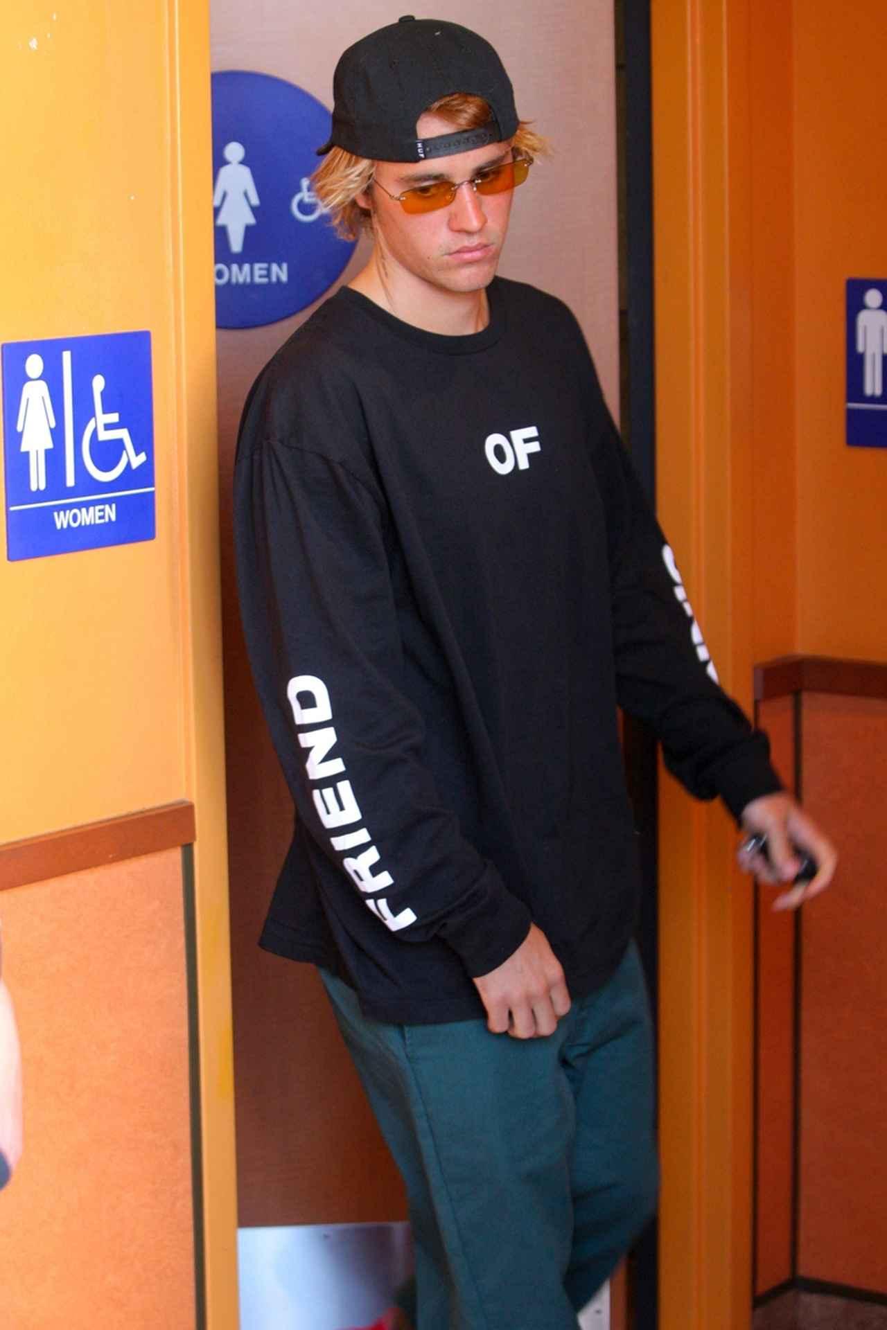 先日、大手ファストフードチェーン店のタコベル(Taco Bell)を訪れたジャスティン・ビーバーが、店内にある「男子禁制」の場所に足を踏み入れたところをカメラが捉えた。