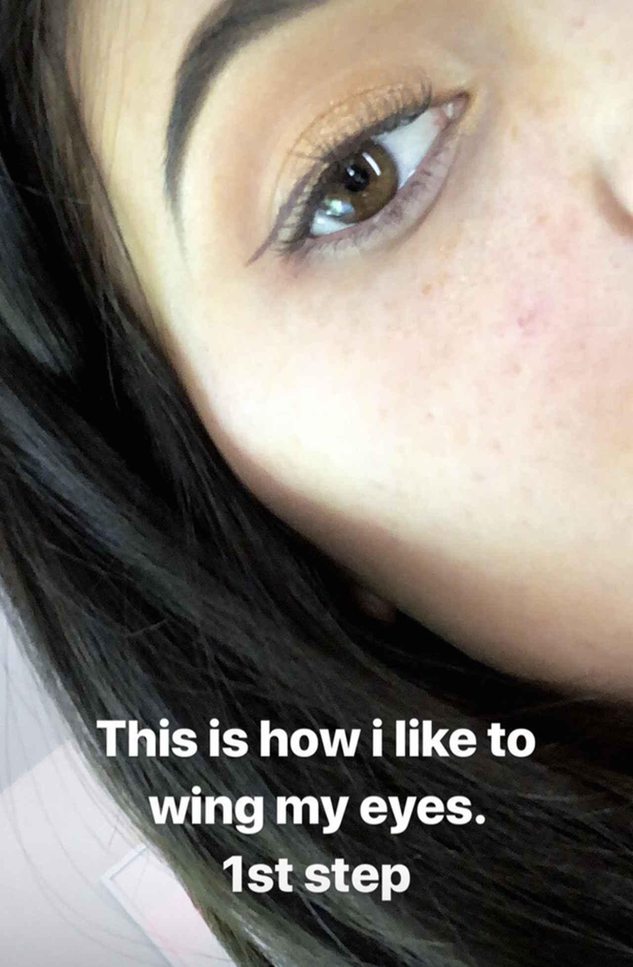 そしてこのアイシャドウでラインを引いた完成形のメイクはこちら。確かにいつもアイライナーでくっきりとキャットアイを作る普段のカイリーのメイクよりも、柔らかい印象に仕上がっている。