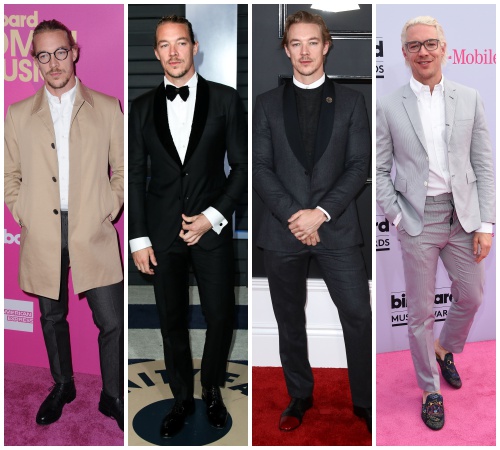 Aリストなイベントでもカジュアルスタイルで挑む人が多いEDM界の中で、ディプロは、フォーマルも着こなせるおしゃれDJ。タキシードを着ることもあるが、ネクタイレスなスタイルがお気に入り。