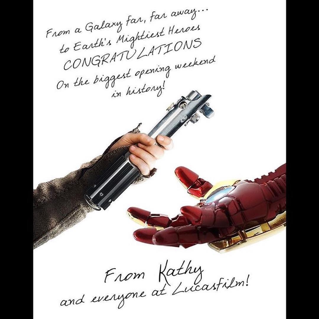 これからもよきライバルとして切磋琢磨していくであろう両社だけに、ルーカスフィルムはマーベル・スタジオの成功を称えた。