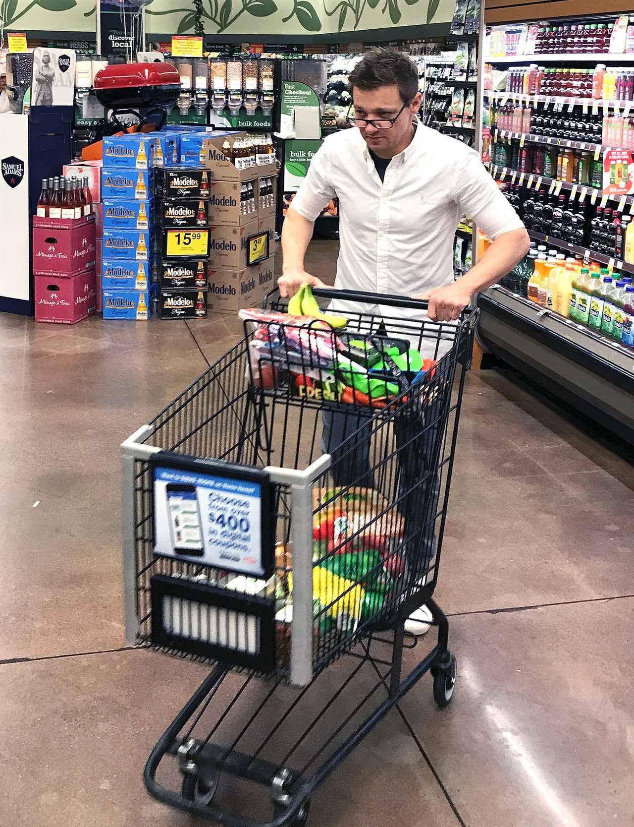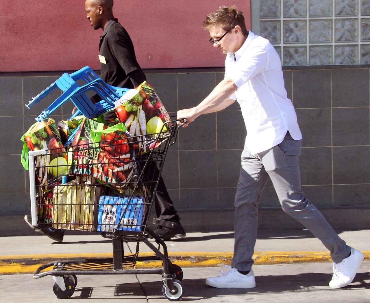 スーパーで買い物をするジェレミー・レナー