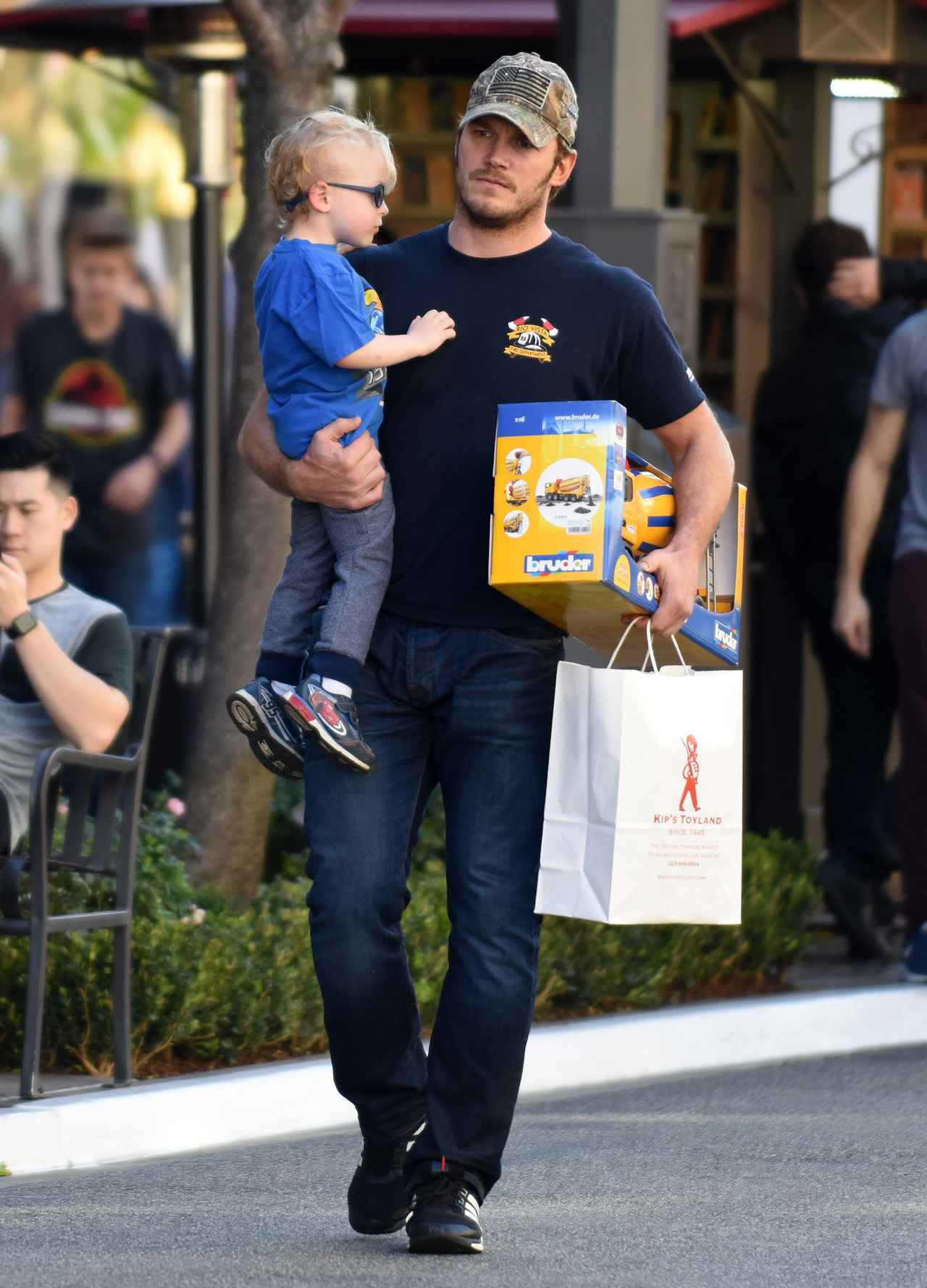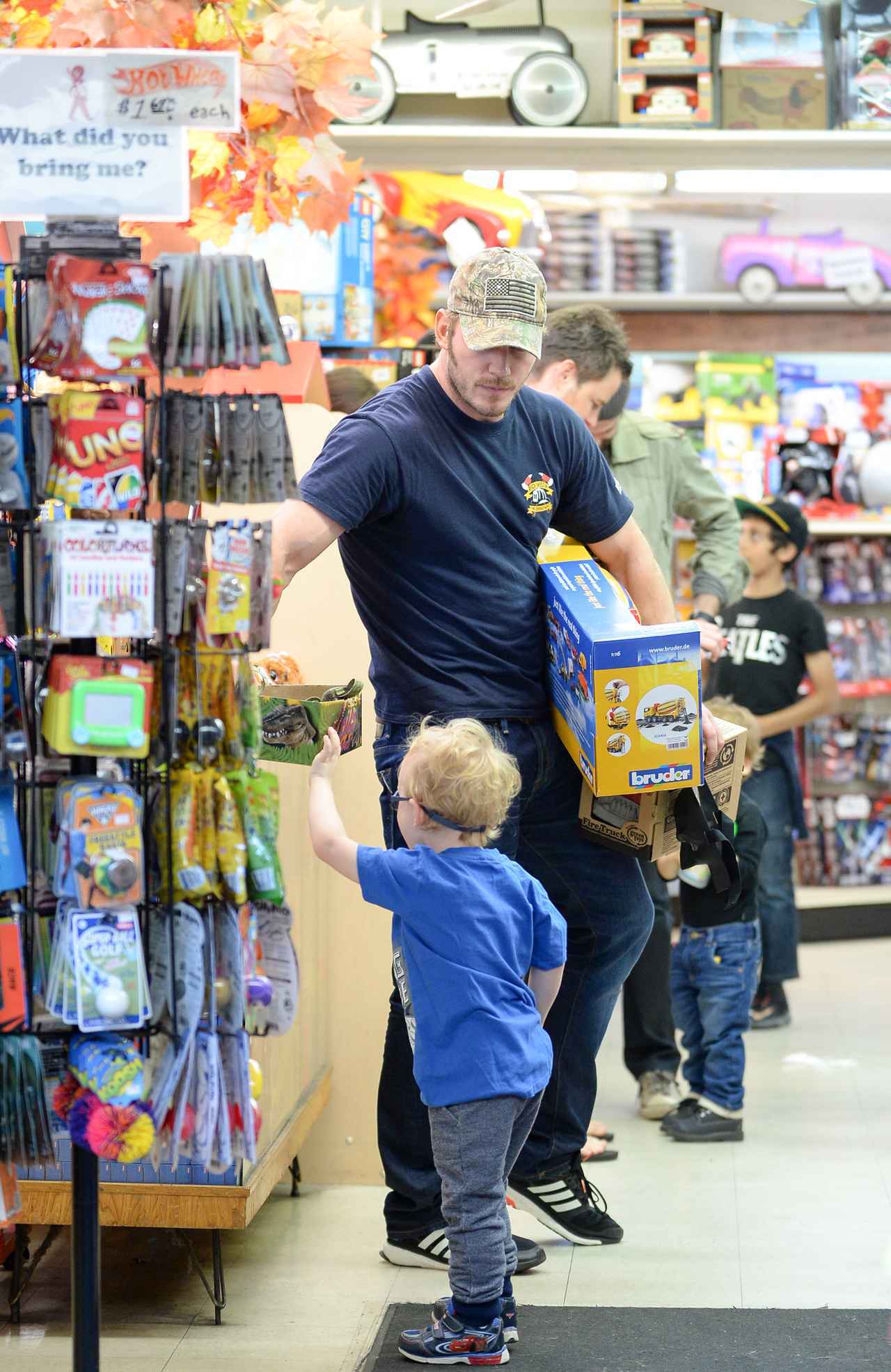 子供におもちゃを買ってあげるクリス・プラット