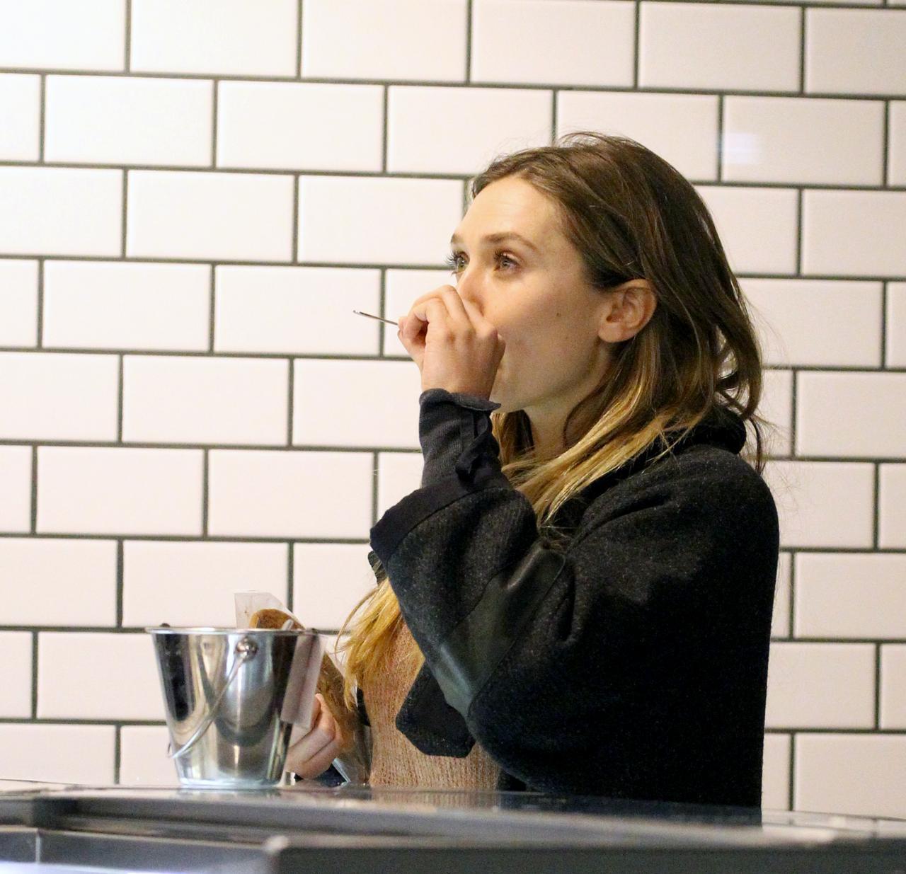 アイスクリームを試食するエリザベス・オルセン