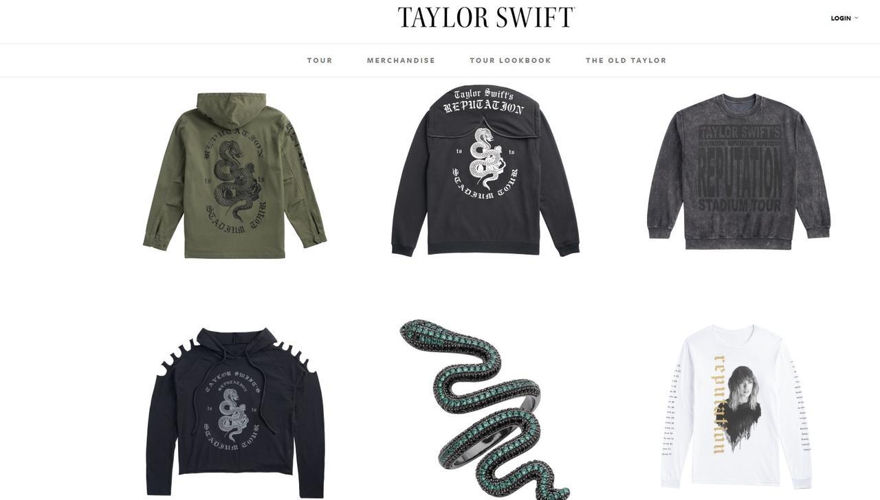 今回のレピュテーション・スタジアム・ツアーで発売されるグッズは、Tシャツやタオルといった定番のアイテムに加え、ツアーフラッグや、ポンチョ、そしてテイラーが「ルック・ホワット・ユー・メイド・ミー・ドゥ」のMVではめていたようなヘビの指輪などが販売される。
