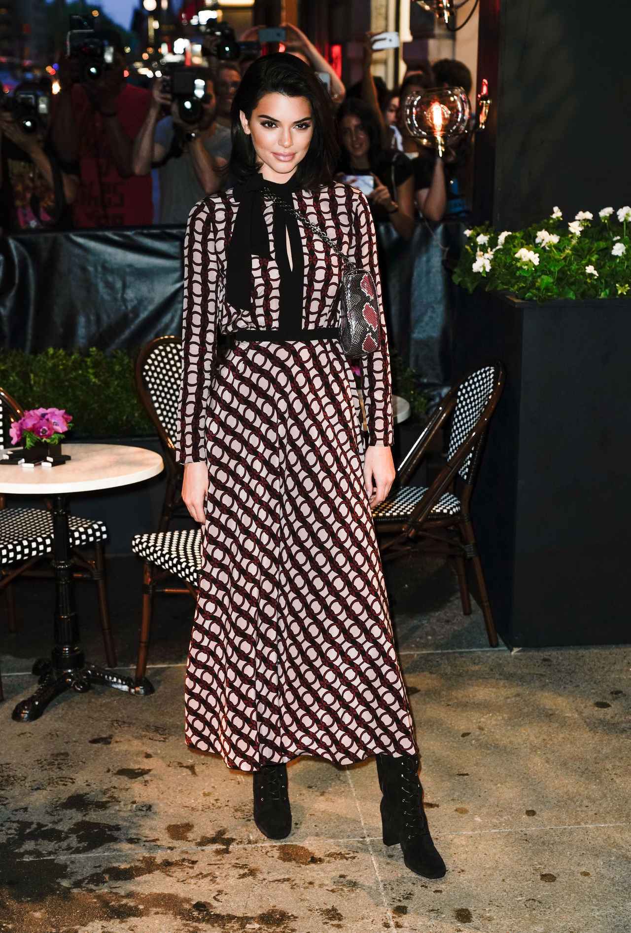 同日夜に行われたLONGCHAMPのストアオープニングイベントに、同ブランドのロングドレスで出席。いつものスポーティかつエッジーなケンダルの雰囲気とは一変し、レディライクなドレススタイルが新鮮と思いきや、肩にかけたバッグはパイソン柄でケンダルらしい辛口なスパイスを忘れずに。