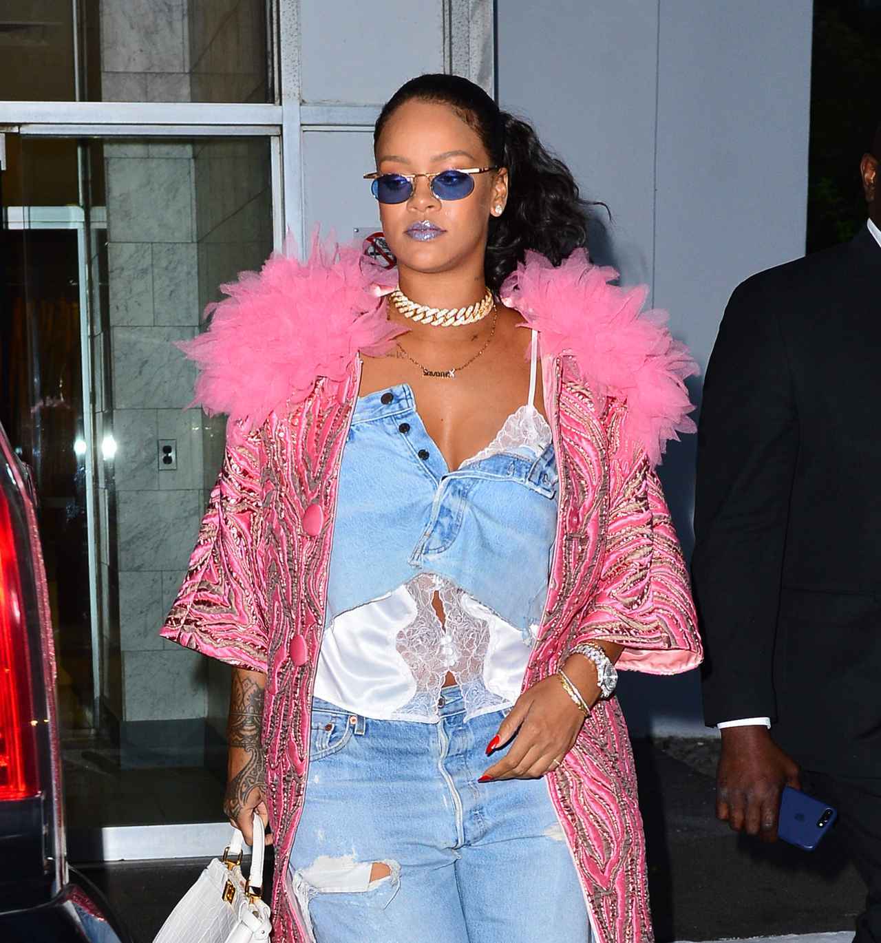 つい先日、上下デニムにピンクの派手なジャケットを合わせた、センスが光るコーディネートで外出するところをカメラに激写されたリアーナ。実は、この時彼女が着ていたデニムのトップスにはある重大な秘密が。