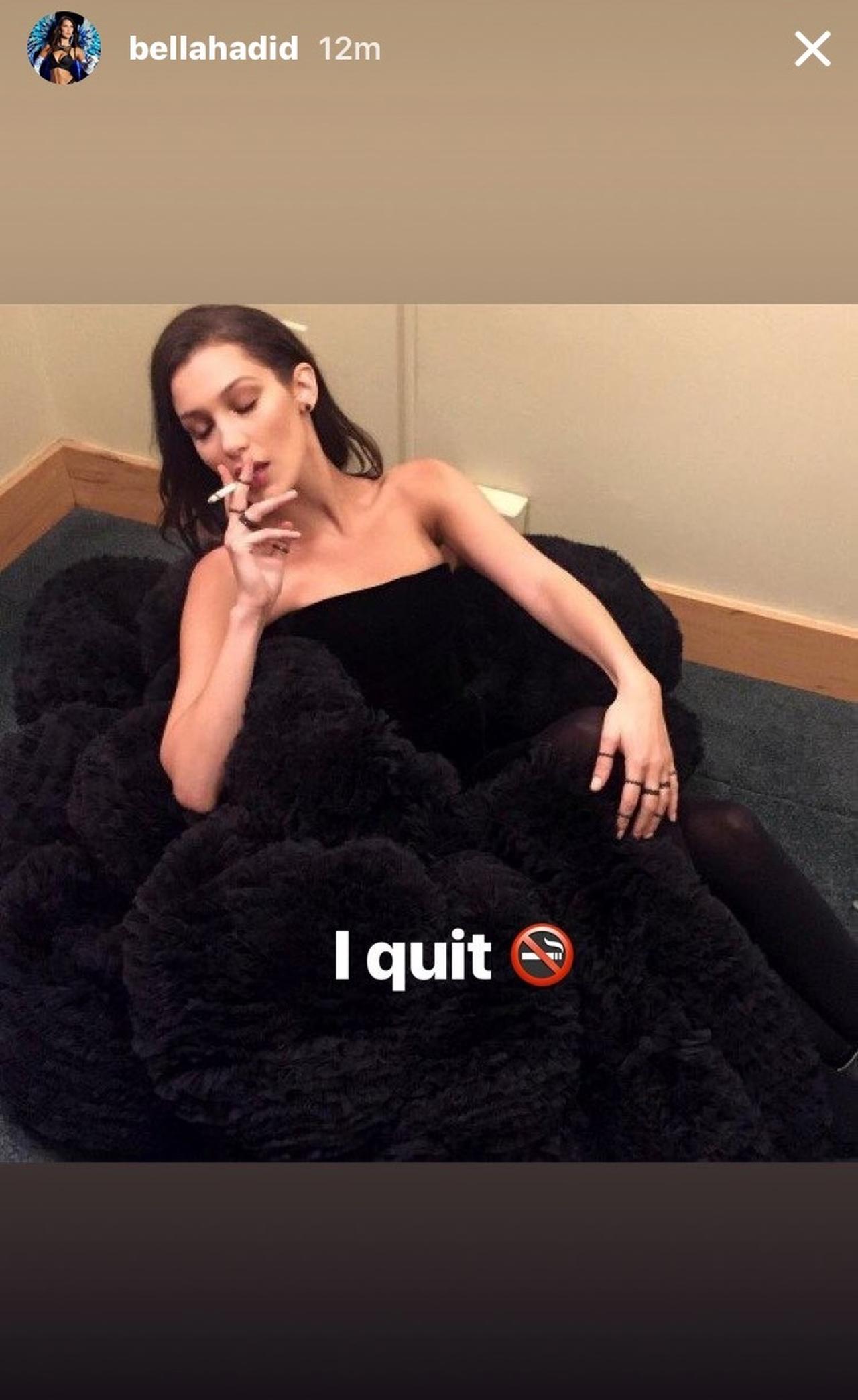こうしたこともあってか、今回ベラは、2016年のメット・ガラで撮影された自身の喫煙写真をあえてインスタグラムに公開して、「タバコ辞めました」とコメント。禁煙を宣言した。