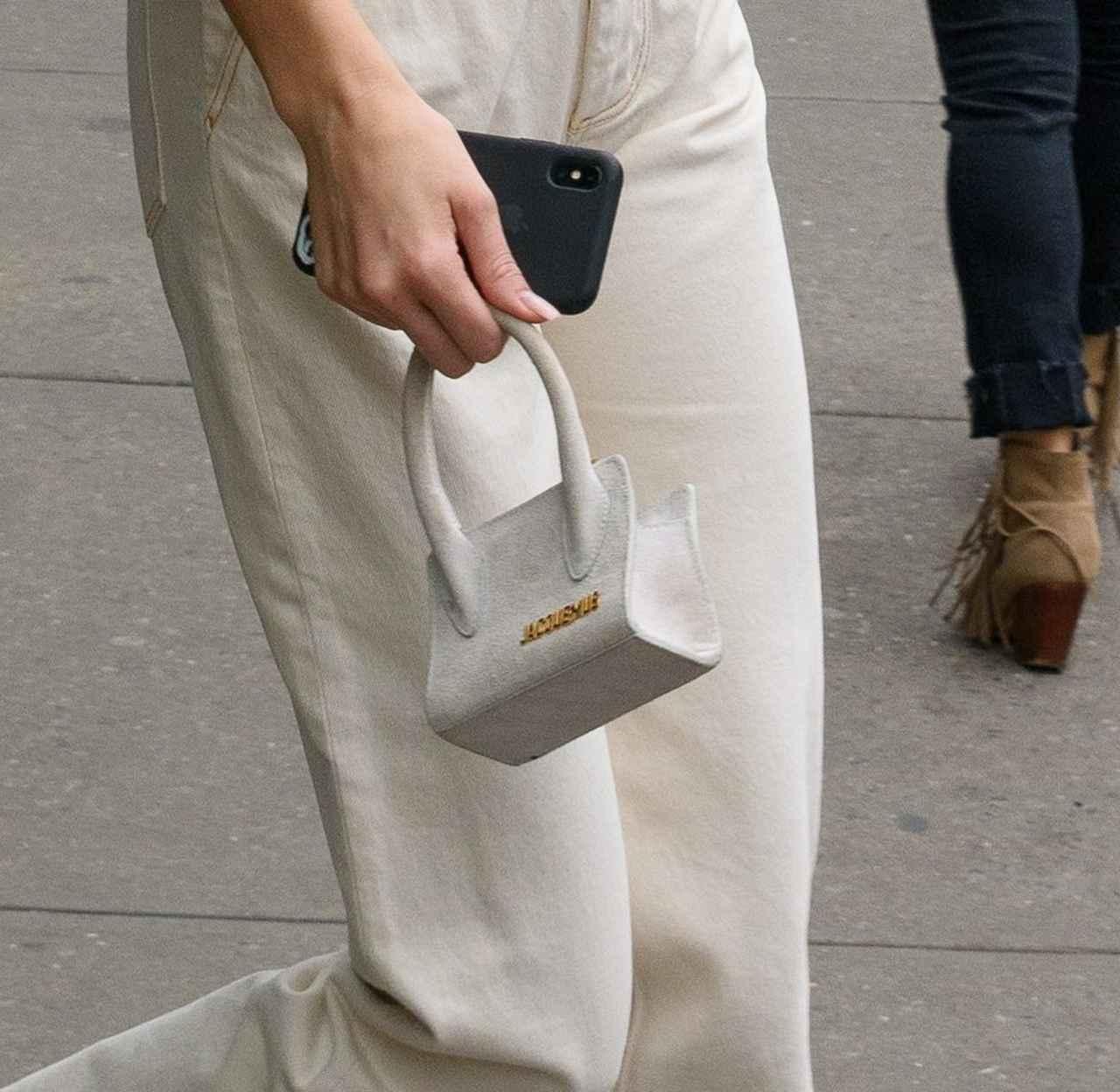 そしてケンダルの手元には、数シーズン前からじわじわと人気を見せている、アクセサリー感覚で使えるマイクロミニバッグが。ケンダルが愛用するのは、フランス発の新鋭ブランドJACQUEMUSもの。